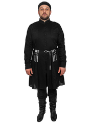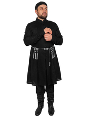 Бешмет «Казарла» (синий, черный) - изготовлен из 100% хлопка. Длина бешмета:98-103 см., рукав длинной75 см. (ширина манжета 8 см) застегивается на 2 пуговицы., Воротник стойка —4 см. Застежка: петли +пуговицы. Казачий костюм - это сложившийся на протяжении веков традиционный, форменный, нарядный комплект одежды, используемый как в повседневной жизни так и на праздниках и парадах. Также казачий костюм неотъемлемая часть сценического образа для праздничных концертов, выступлений, казачьих фестивалей, хоровых пений и для других праздничных гуляний. Уход: ручная стирка до 40 С .