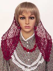Файшонка - традиционный головной убор казачки . Надевался на голову поверх пучка волос , центральная , плетеная часть файшонки закалывается шпильками , а гипюровая часть распределяется по голове , концы висят сзади . Выполнена наша Файшонка вручную ,связана крючком ,поставлена на гипюр и обшита шикарным кружевом .