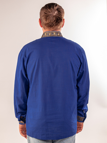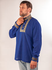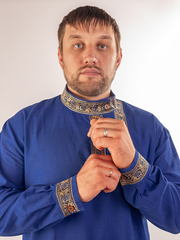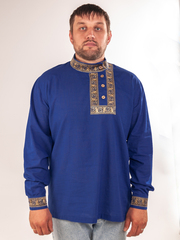 Мужская косоворотка, рубаха свободного покроя с длинным рукавом из 100% хлопка в русском стиле. Воротник — стойка скосой планкой и деревянными пуговицами. Воротник, планка и манжеты рукава, украшены жаккардовой тесьмой с орнаментом. Длина изделия: рост 176 — 78 см., рост 182 — 83 см. Длина рукава: рост 176 — 67 см, рост 182 — 70 см. Натуральный состав ткани косоворотки, позволит чувствовать себя комфортно в любое время года и на любом празднике: Новый год, День рождения, свадьба, масленица, именины, крещение и т.д. Русская косоворотка с тесьмой, легко подойдёт под любой образ как повседневный с джинсами, так и праздничный с шароварами и брюками. Рубашка от бренда Galuba —это способ выглядеть стильно и оригинально. При соблюдении рекомендаций по уходу, рубашка будет сохранять размер, цвет и форму и станет отличным подарком: любимому, брату, мужу, отцу, другу, сыну. Упаковка: пластиковый зип- пакет. Уход: ручная стирка 30 С.