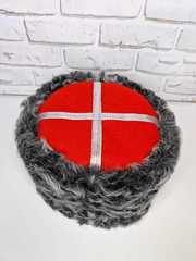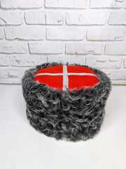 Кубанка из натурального каракуля, серая , с красным верхом.