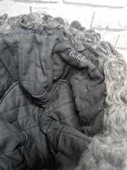 Кубанка из натурального каракуля, серая , с красным верхом.