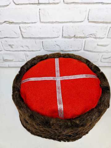 Кубанка из коричневого натурального каракуля, сура, с красным верхом .