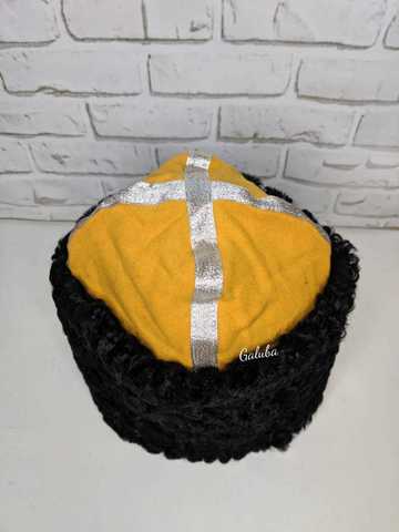 Папаха казачья приказная, каракуль чёрный , с жёлтым верхом .