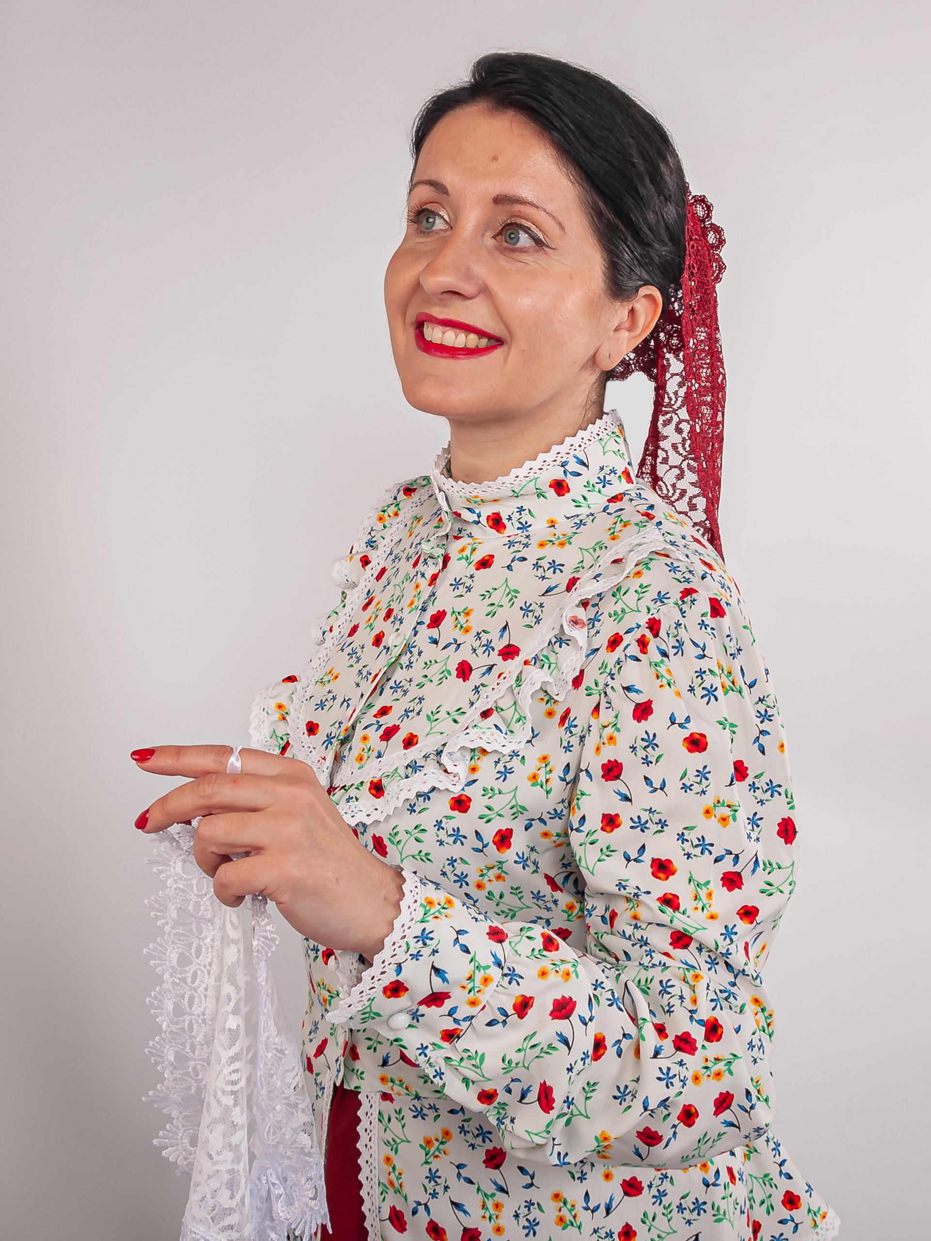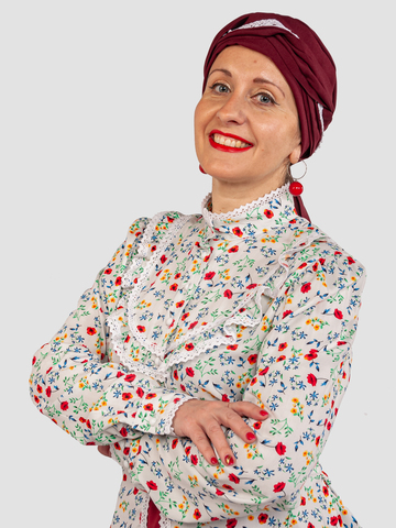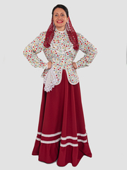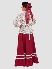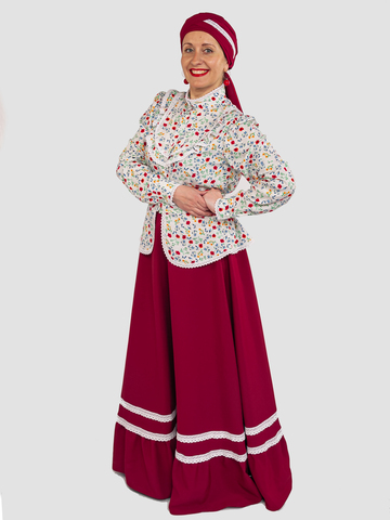 Цвет: Кофта : пёстрый , юбка: бордовый .