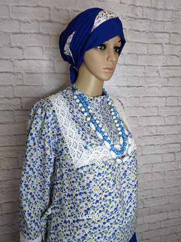 Цвет: Кофта : цветная , юбка: синий .