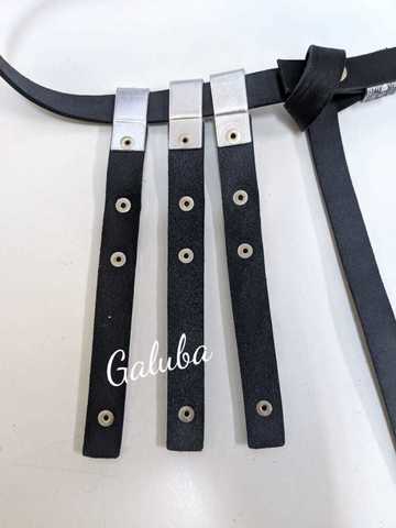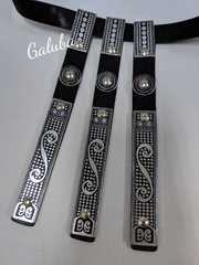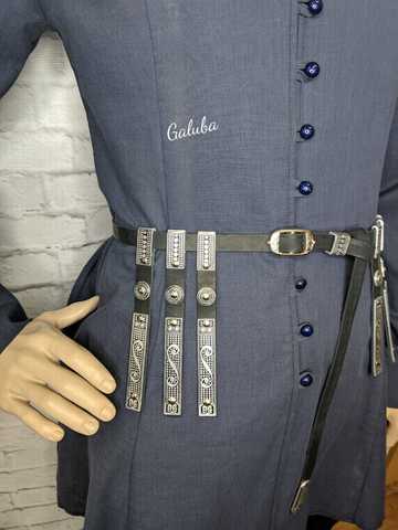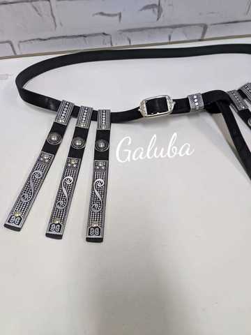 Пояс кавказский , из натуральной кожи , с накладкими из алюминия . Длина 150 см . Цвет чёрный.