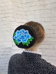 Шлычка казачья - традиционный головной убор. Надевается шлычка на пучок из волос на голове, для закрепления используется шнурок, резинка ( вставлен в шлычку ), спятать шнурок, резинку под шлычку и закрепить шпилькой или невидимкой. Шлычка изготовлена из синтетического мелкого вельвета, расшита вышитой аппликацией . Ширина шлычки 14 см, высота шлычки 4 см, Завязывается шлычка на шнурок или резинку.